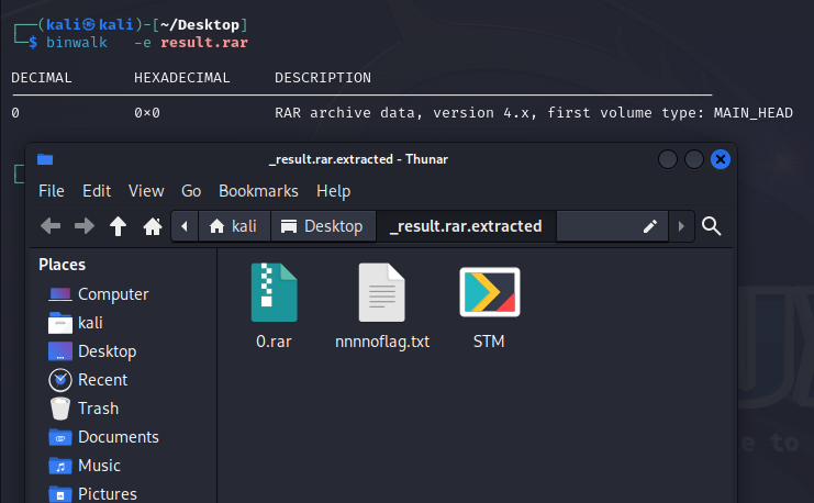 前面已经出现了标志块和归档头部块,就改成0x74,保存后将RAR报使用binwalk分离,发现STM.png文件