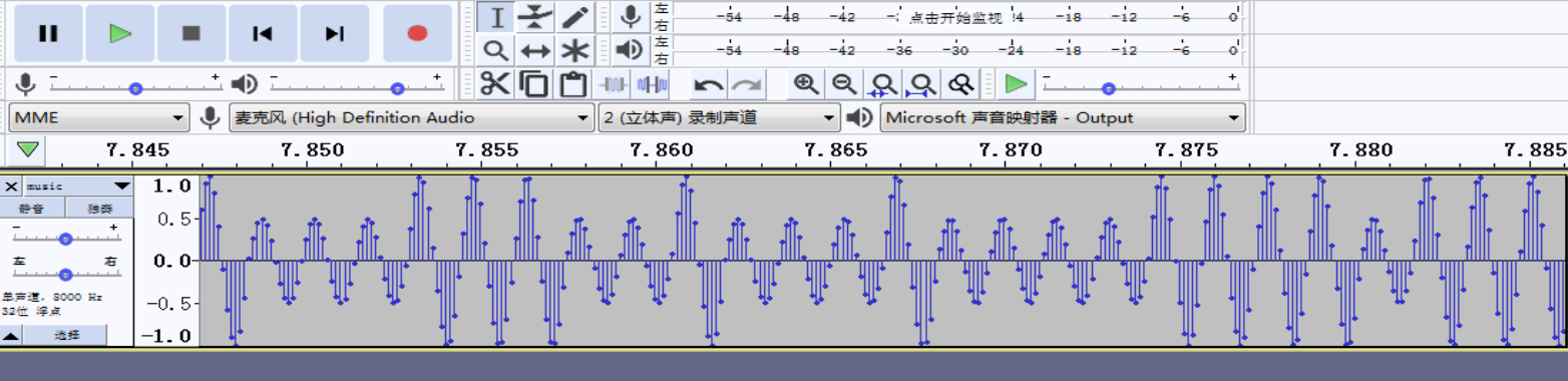 下载文件,用Audacity打开,查看频谱图,放大波形,其有一定的规律 -01 序列