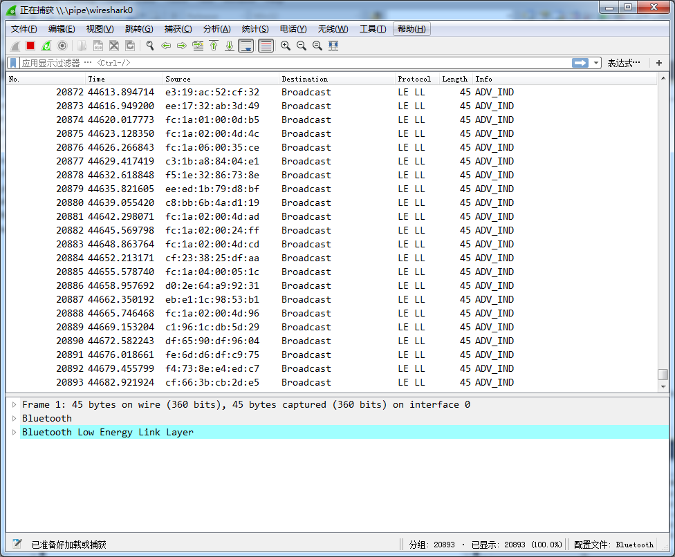 1. 准备 * 硬件: Sniffer usb dongle (以下简称dongle) * 软件: ble_sniffer_vs2010 * 驱动:ble_sniffer_usb_driver * Wireshark 程序安装: http://www.viewtool.com/index.ph ... hollong-4-0-4-1-ble 选择适合电脑Windows 版本的软件下载。 2. 驱动安装: * 原有的dongle 驱动如下: ![]() * 卸载以前的驱动,同时要删除: ![]() * 重新拔插dongle: ![]() * 点击鼠标右键,选择“更新驱动程序”,同时指向新的驱动 : ![]() * 安装新的驱动,完成后如下: ![]() 3. 应用程序编译及执行: * 安装Wireshark: 下载纬图网站上的程序或者从Wireshark 官方网站下载,然后安装; * 编译执行:ble_sniffer_vs2010 下面目录里面的vs2010 工程,编译并执行,出现以下两个界面: ![]() Wireshark 界面: ![]() |