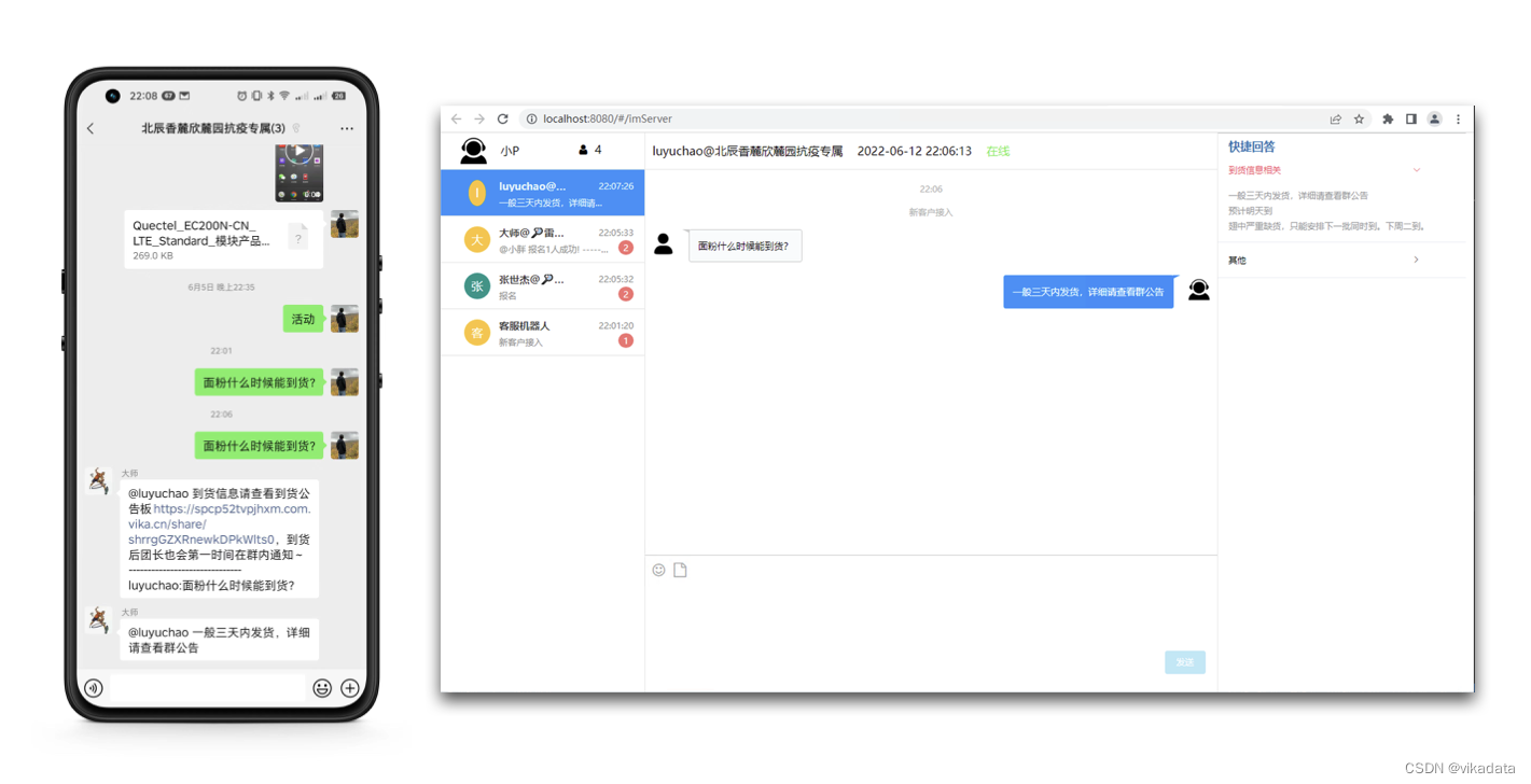 vue-im—— 由@polk6开源的客服web项目,实现客服后台回复咨询消息