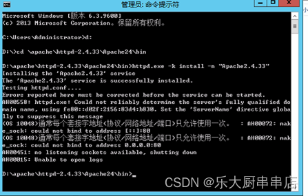 以管理员身份运行CMD,进入Apache24\bin 目录(httpd.exe所在目录)
