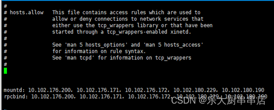 1)在NFS主机上编辑:vi /etc/hosts.allow,加入如下内容: