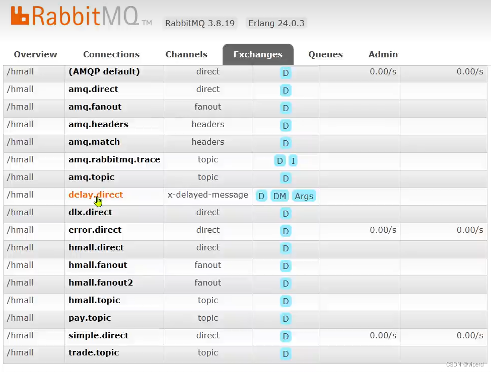 可以看到:delay.direct后面的参数:x-delayer-message,表面这是个延迟消息的交换机