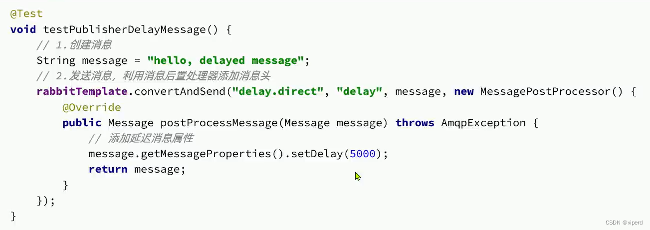 - 在发送消息时,可以使用setDelay来设定延迟消息的时间。
