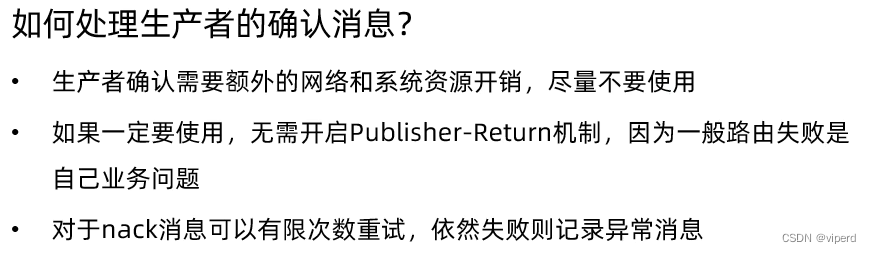 其次,我们还可以开启生产者确认机制,当消息发送到MQ中时,MQ都会给一个ACK的回执,如果发送失败,会给一个NACK的回执。这样就可以根据回执的情况来判断,如果是失败,是不是需要重新发送消息...