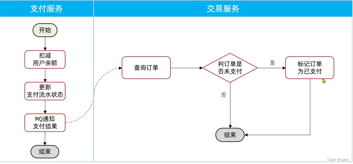 在事件模式中,支付服务是事件发布者(publisher),在支付完成后只需要发布一个支付成功的事件(event),事件中带上订单id。