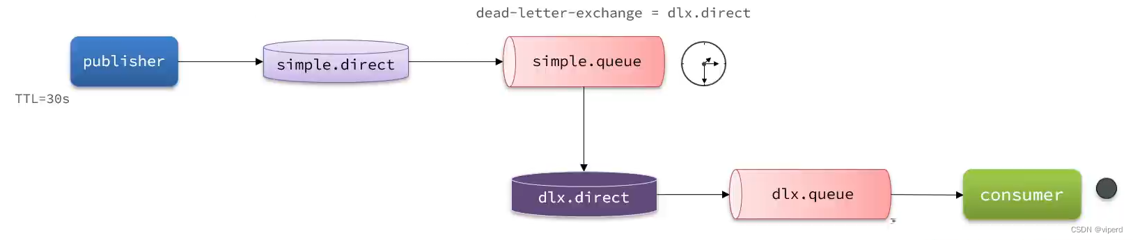 - 当消息的过期时间一到,死信就会发送到这个死信交换机中。