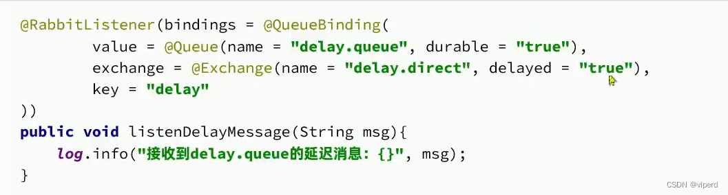 - 在设置消费者时,进行绑定的时候,要把交换机的delayed属性设置为true