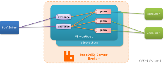 publisher:消息发布者,将消息发送到队列queue