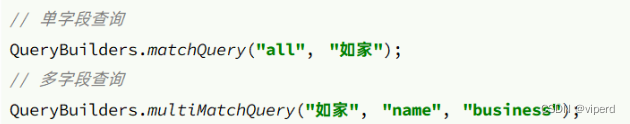 因此,Java代码上的差异主要是request.source().query()中的参数了。同样是利用QueryBuilders提供的方法: