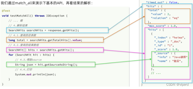 elasticsearch返回的结果是一个JSON字符串,结构包含: