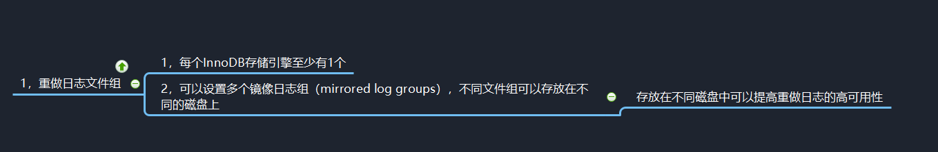 每个InnoDB存储引擎至少有1个重做日志文件组,可以设置多个镜像日志组(mirrored log groups),不同文件组可以存放在不同的磁盘上从而提高重做日志的高可用性。