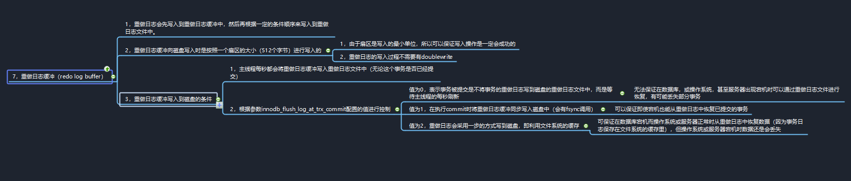 重做日志从重做日志缓冲写入到磁盘中是按照一定条件进行的,会根据参数innodb_flush_log_at_trx_commit配置的值进行控制。