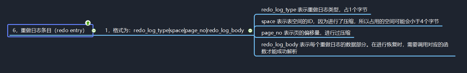 重做日志条目分为4部分,格式为:redo_log_type|space|page_no|redo_log_body。