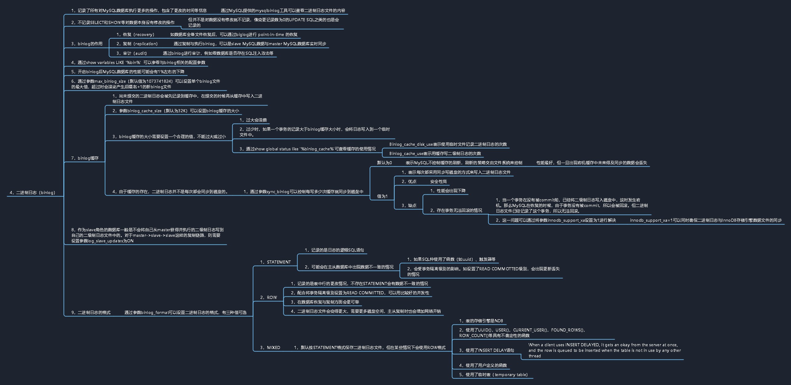 binlog的格式有STATEMENT、ROW、MIXED三种,可以通过参数binlog_format进行设置。三种值可以实现不同的功能,但同时也带来不同的影响。