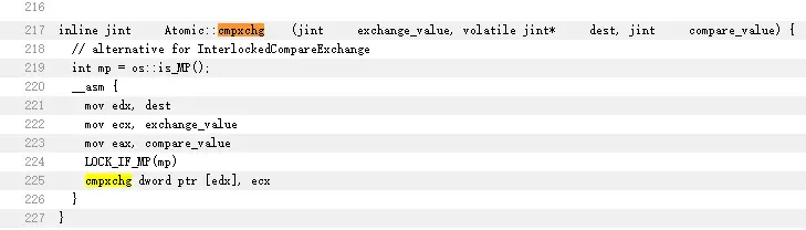 因为compareAndSwap的native方法在OS里面实际上就是cmpxchg指令,接来下去到openjdk里面查看这个指令的源码: