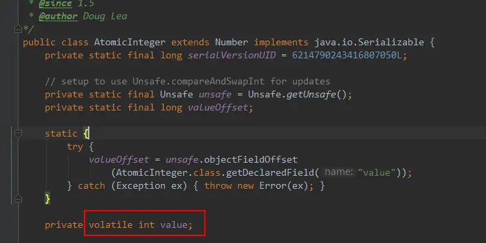 通过volatile原语对value进行了可见性的判断,当多个线程去并发访问的时候,能够启用缓存一致性原则保证线程之间的可见性