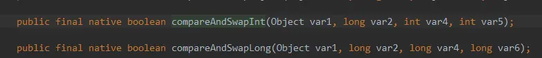 原理:CAS底层是通过JNI去调用,是java通过调用C代码操作OS来获取的一个原子操作,通过看sun.misc.Unsafe类里面的方法,可以看到compareAndSwap()是一个native方法:
