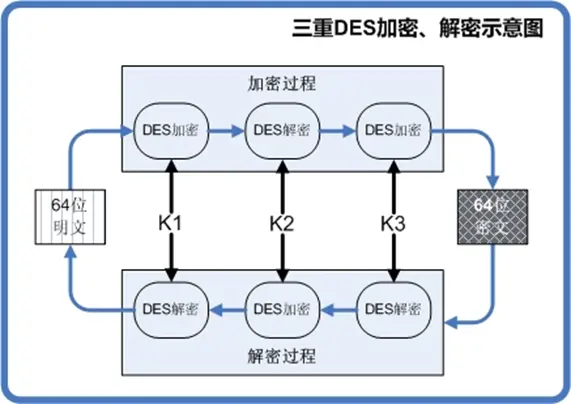 又称Triple DES,是DES加密算法的一种模式,它使用3条56位的密钥对3DES数据进行三次加密。