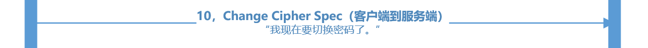 此时客户端与服务端之间已经交换过各种建立加密通讯所需的信息,在Change Cipher Spec消息之后,双方就会使用商定的密码通讯方式进行通讯。Change Cipher Spec其实并不是握手协议的消息,而是密码规格变更协议的消息。