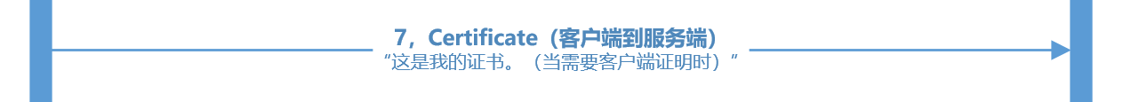 如果在第五步中服务器有发送Certificate Request的话,客户端就要发送Certificate的消息给服务器。Certificate消息会包含客户端自己的证书,服务端收到客户端的证书后会对证书进行验证。