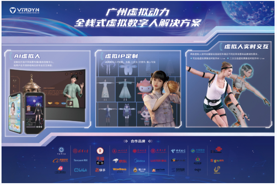 广州虚拟动力作为集结动作捕捉技术、面部捕捉技术开发、AI虚拟数字人开发等多项自研专利技术和多领域数字人综合运营能力的团队。为文创行业打造多元化虚拟数字人,如虚拟发布会的虚拟主持人、博物馆的虚拟讲解员、国漫电影虚拟偶像、文创品牌宣传大使以及广电节目主持人等。虚拟动力将继续带着科技的力量文化创新的使命,助力各行各业开拓有趣的新文创!