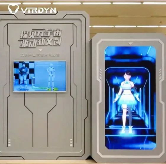 本次大会虚拟动力携全栈式虚拟IP解决方案,在文创活动现场打造“3D数字人虚实合影时光机”,基于动作捕捉技术、实时驱动渲染技术和绿幕抠绿技术,在展会大屏中实时呈现捕捉真人动作后生成真实、流畅的高精度虚拟人画面,参展者可以通过绿幕,与虚拟人实时互动,沉浸式体验数字人互动。