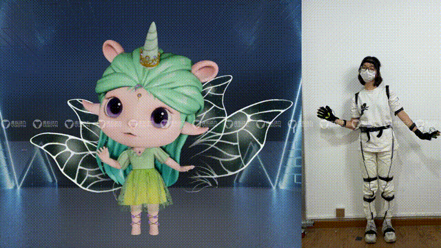 各大型活动通过实时数字人技术方案,无需搭建特殊的动捕棚,不受场地、光照、遮挡等问题,即可让真人穿戴动捕设备VDSuit Full,一键连接驱动数字人,赋予数字人身体、表情动作,让数字人可以像真人一般与用户进行交流互动,打造高度沉浸、虚实结合的交互体验,丰富活动的呈现形态。