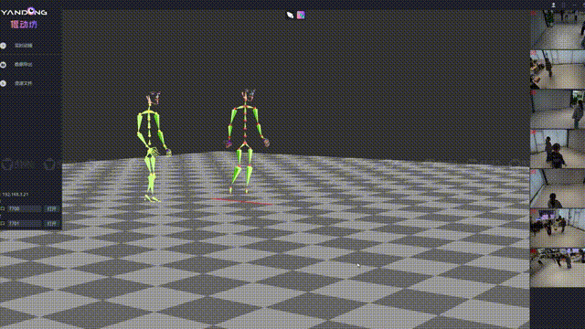 AI摄像头动捕系统,通过部署多组高帧率RGB摄像头,在空间中构建一个精密的三维捕捉场域。这种无穿戴动捕(或称无标记点动捕)的方式,让用户无需任何设备束缚人体,即可自由地进行动作演练,系统便能智能推算出完整、连贯的骨骼姿态,实现实时动作捕捉。