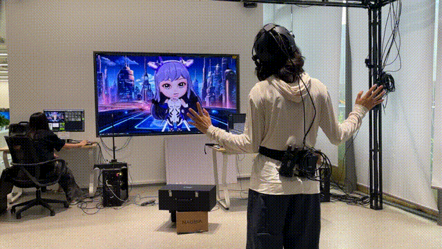 那么,你是否好奇,在这些生动活泼的虚拟人直播间中,虚拟形象是如何“动”起来的?她们不仅拥有精致的面容与服饰,还具备丰富的表情与灵动的肢体语言。这一切的背后,离不开“中之人”模式的支撑——通过幕后真人穿戴动捕设备或无感摄像头,实时捕捉动作与表情,并将其精准映射至虚拟角色,实现“人驱虚拟”的沉浸互动。