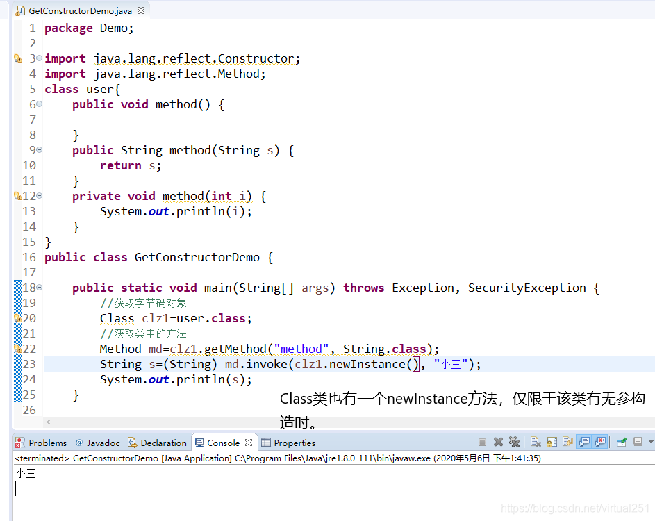 Constructor类:表示类中构造器的类型,Constructor的实例就是某一个类中的某一个构造器
