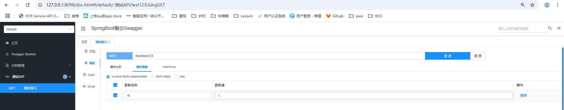 访问网页http://127.0.0.1:8098/swagger-ui.html,原本的访问地址是swagger-ui.html现在是doc.html
