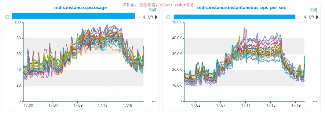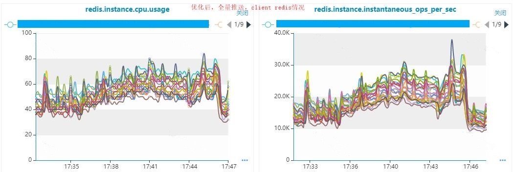 2)消息体还有等待队列都存储在一个集群,推送时都需要操作,导致Redis并发很大,高峰期cpu负载较高,到达90%以上。