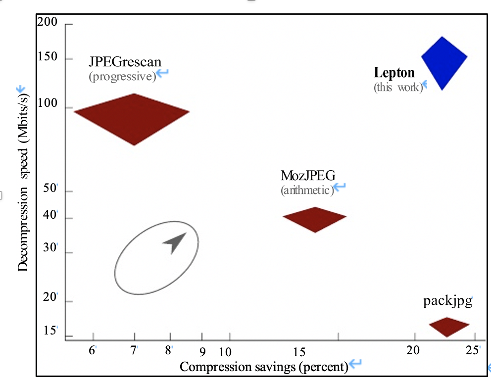 Lepton便可以在JPEG基础上进一步对图片进行无损压缩。