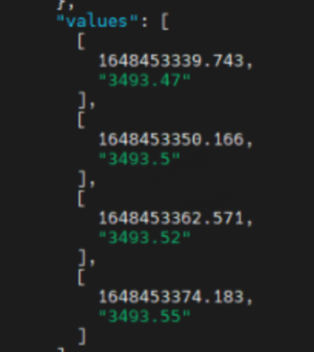 可以看到只取到了4个值,与期望的 6个值不相符,即发生了“掉点”的情况,监控面板按指定频率展示数据会有频繁掉0现象。