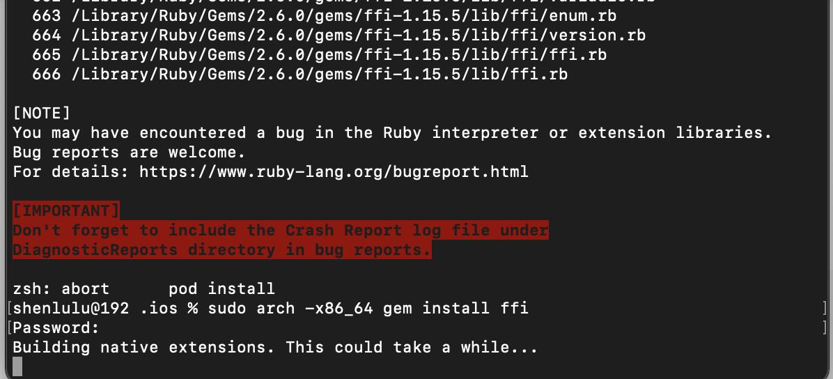 # [M1芯片 使用pod install 报错You may have encountered a bug in the Ruby interpreter or extension libraries. Bug reports are welcome. For details: https://www.ruby-lang.org/bugreport.html](https://www.cnblogs.com/lulushen/p/16078446.html)
