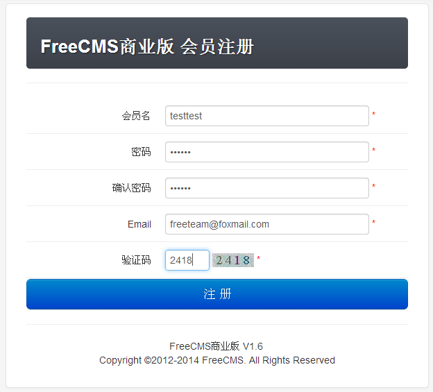 开源 java CMS - FreeCMS2.8会员注册