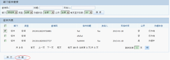 用户可以把信件转交给其他部门或个人办理,系统会记录此信件的转交记录。