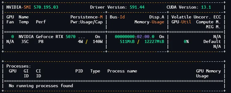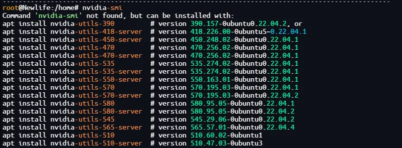 验证安装(如果有下面的图就不用再次驱动了,如果没有会显示驱动列表):nvidia-smi
