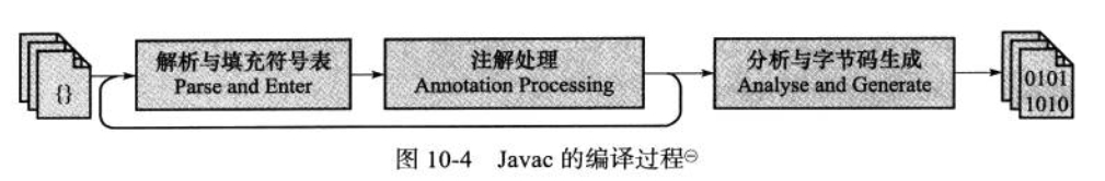 - 如果这些插件在处理注解期间对语法树进行了修改,编译器将回到解析及填充符号表的过程重新处理,直到所有插入式注解处理器都没有再对语法树进行修改为止,每一次循环称为一个Round。
