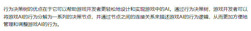 行为决策树是一种用于游戏AI的决策模型,它将游戏AI的行为分解为一系列的决策节点,并通过节点之间的连接关系来描述游戏AI的行为逻辑。在行为决策树中,每个节点都代表一个行为或决策,例如移动、攻击、逃跑等,而节点之间的连接关系则代表了不同行为之间的优先级和逻辑关系。