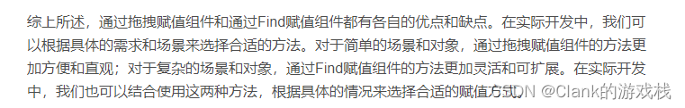 可靠性差:通过Find赋值组件的方法依赖于对象的名称或其他属性,如果名称或属性发生变化,可能会导致查找失败。这使得代码的可靠性相对较差,需要开发者保证对象的一致性和正确性。