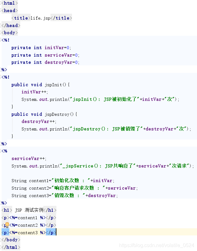 容器载入JSP文件后,它会在为请求提供任何服务前调用jspInit()方法。