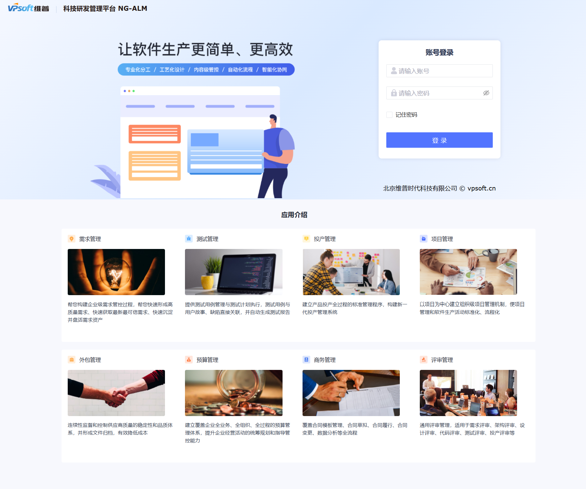 - 全流程闭环:打通 “需求 - 项目 - 开发 - 测试 - 投产”,解决信息孤岛,实现端到端管控;