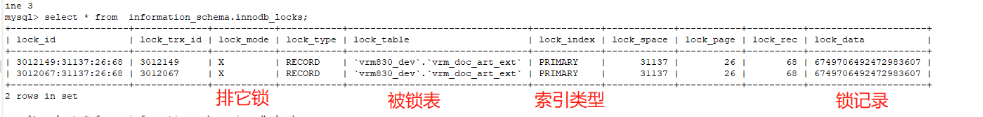 RECORD LOCKS space id 247 page no 4 n bits 96 index PRIMARY of table `vrm`.`vrm_doc_art_ext`
