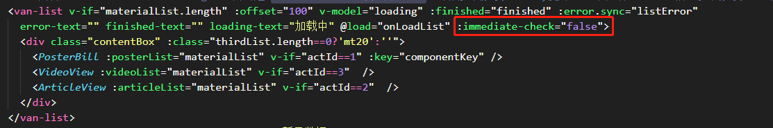 最近在使用van-list组件开发带有tab切换的项目,需求是tab是后端返回的数据,所以获取列表数据要在tab返回之后调用,所以进入页面时默认不触发van-list的load事件,官方文档说明:如下图所示: