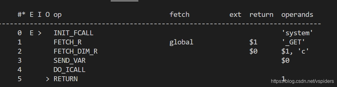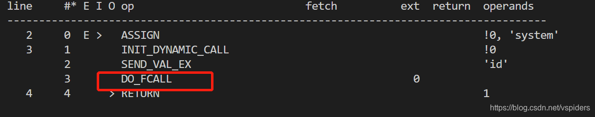 首先使用vld扩展看一下system函数调用的对应的opcode。