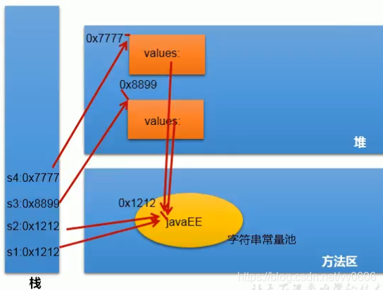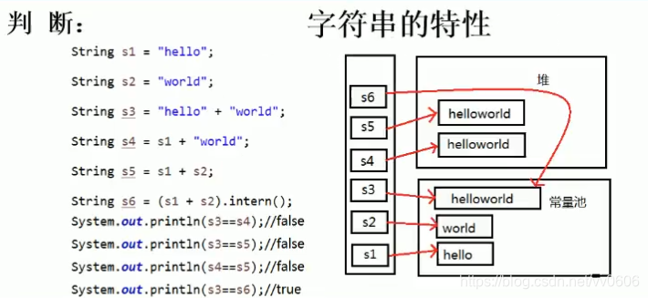 System.out.println(s1 == s3);//false,s1在常量池中,s3在堆里