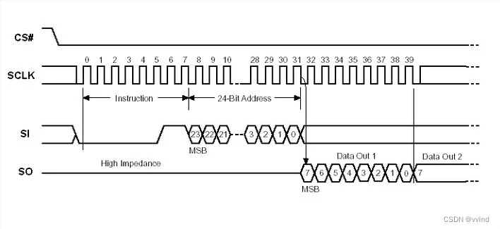 5、字节数据通过串行数据输出引脚(SO)移位输出,每一位在串行时钟(SCLK)下降沿被移出。