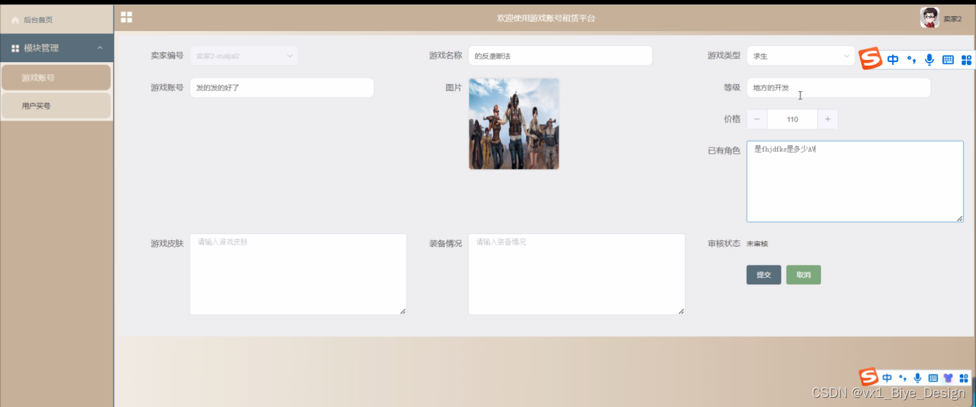 游戏账号添加页面设计效果如下图所示。